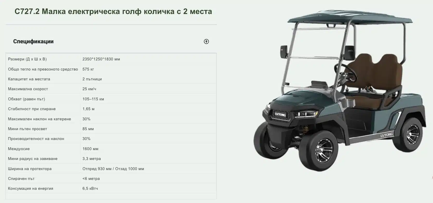 Електрическата голф количка C727.2 е компактно, икономично и екологично транспортно решение, предназначено за удобно придвижване на двама пътници. Благодарение на малките си размери и отличната маневреност, моделът е идеален за голф игрища, хотели, курорти, паркове, индустриални обекти и частни имоти, където се изисква бързо и безшумно придвижване.