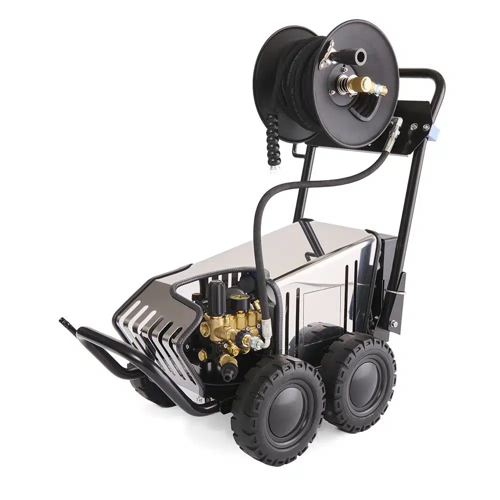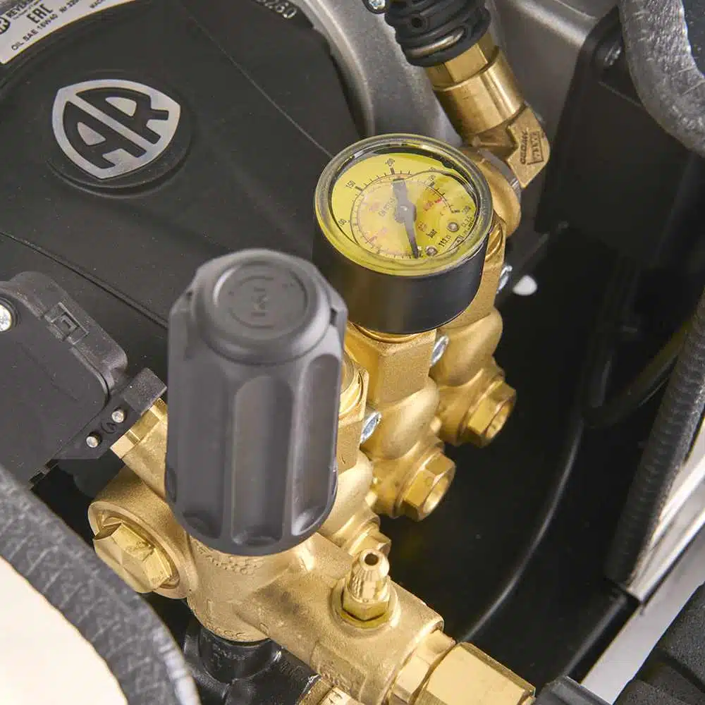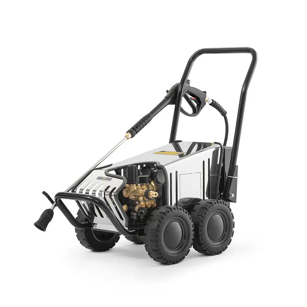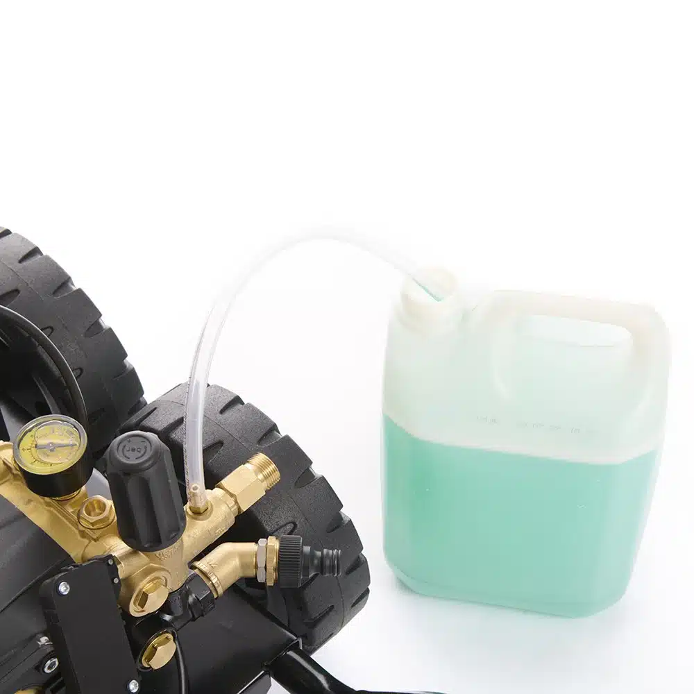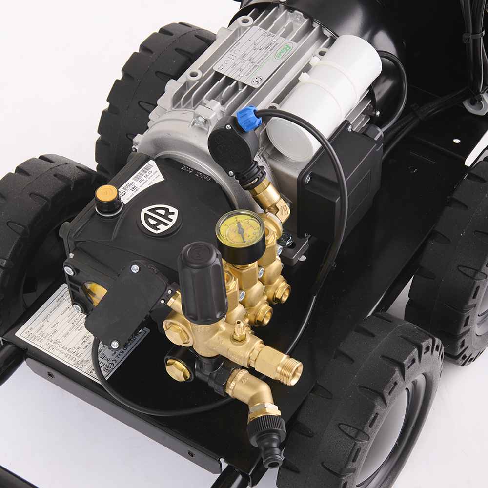 Водоструйката е оборудвана с професионална помпа с 3 керамични бутала, месингова глава и манивелно-бутален механизъм, което осигурява дълъг експлоатационен живот и висока надеждност. Възможността за регулиране на налягането и засмукване на препарат правят модела изключително гъвкав за различни приложения.