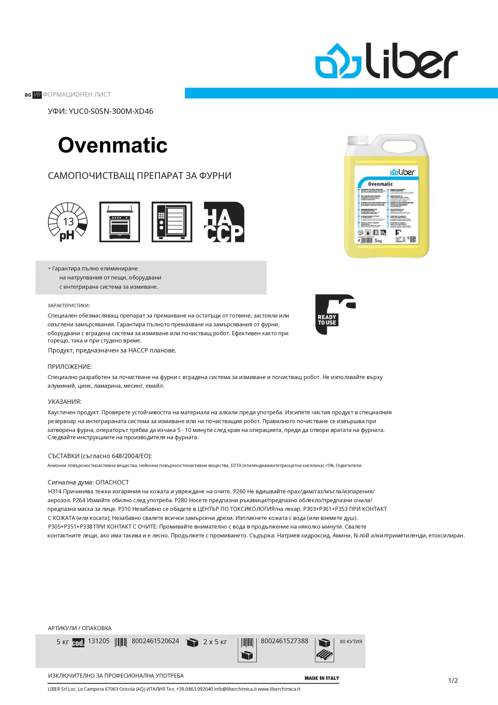 Ovenmatic е силно активен обезмасляващ препарат, създаден за ефективно отстраняване на загорели остатъци от храна, наслоявания и карбонизирани замърсявания. Предназначен е за професионална употреба в кухни и хранително-вкусовата индустрия, където се изисква високо ниво на хигиена.