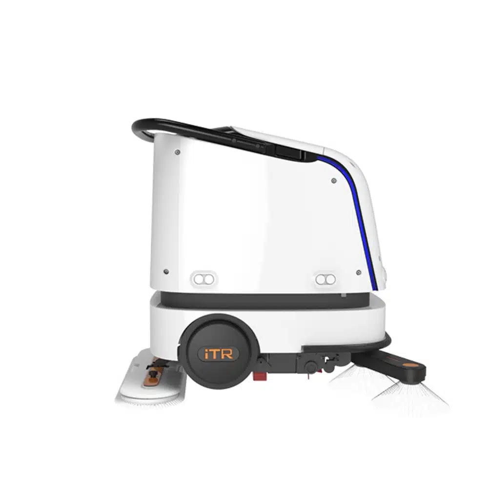 iTRmop е иновативен робот, съчетаващ три функции в едно устройство – метене, прахосмукиране и избутване на прах. Той е специално проектиран за професионално почистване на големи обществени и търговски пространства.