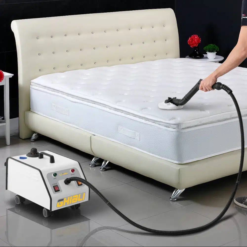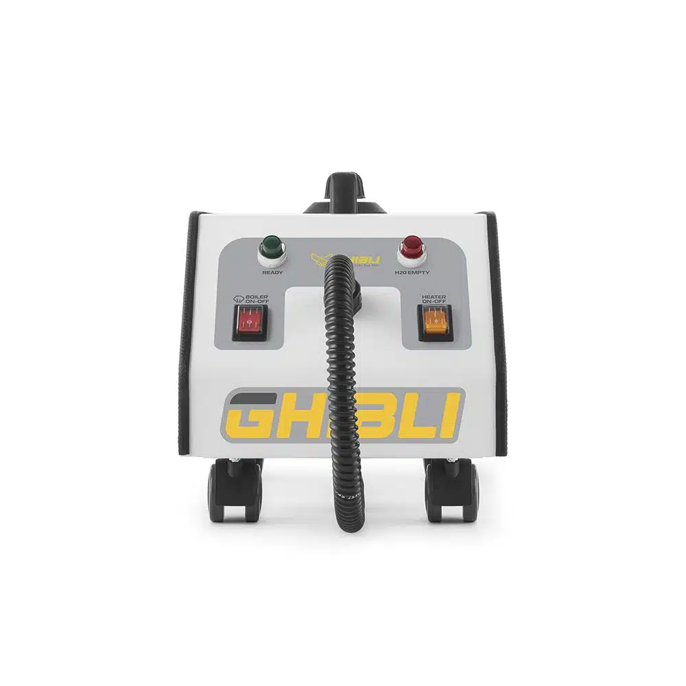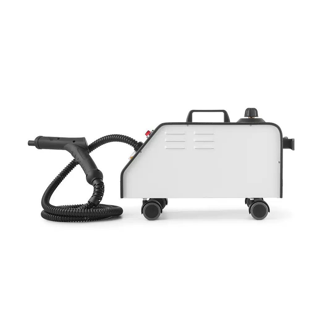 Парогенераторът разполага с котел с капацитет 2 литра и мощност 2000 W, което позволява достигане на работно налягане от 5 bar. Това осигурява непрекъсната и ефективна работа, подходяща за професионална употреба в големи помещения или многократни обработки.